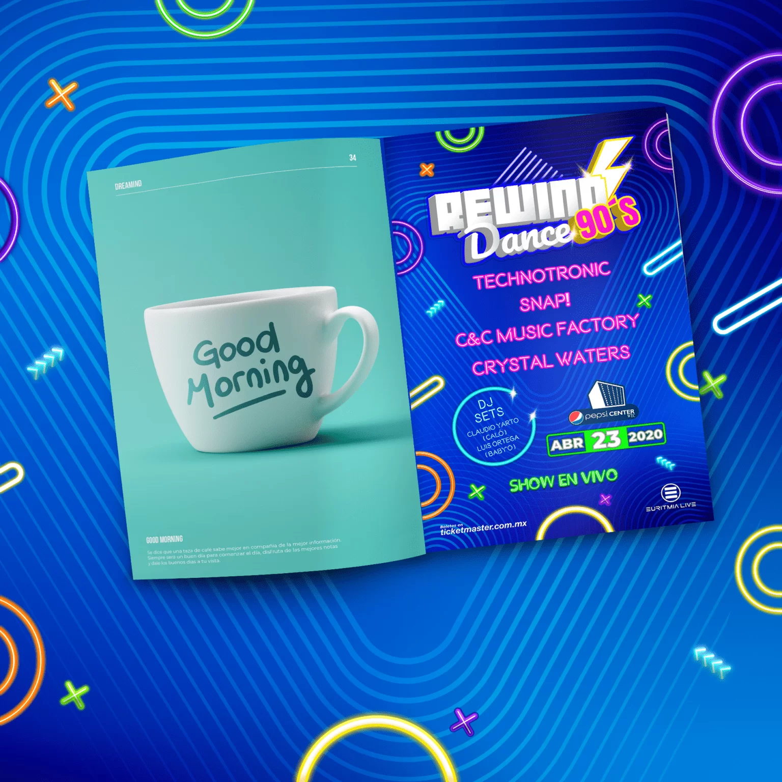 Dreamind desarrolló toda la comunicación visual y línea gráfica oficial para Rewind Dance 90’s, un concierto temático que revive la energía icónica de una de las décadas más vibrantes de la música. Nuestro objetivo fue capturar la esencia retro de los 90’s y transformarla en una experiencia visual moderna, atractiva y totalmente memorable para el público.